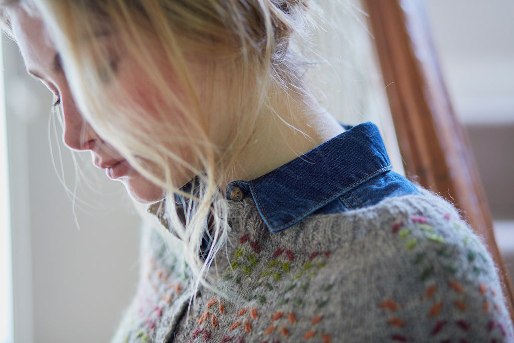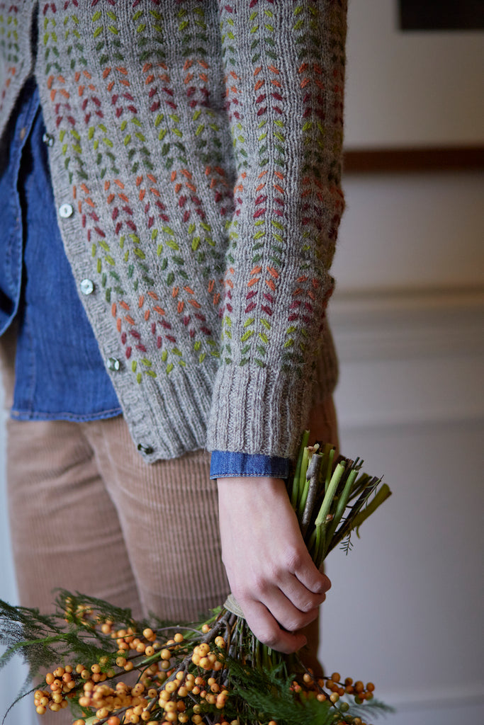 The Bricklands Cardigan from Sticka - The Tithe Collection, is a stylish cardigan which is knitted in the round and steeked, showcasing our signature stitch detailing.
