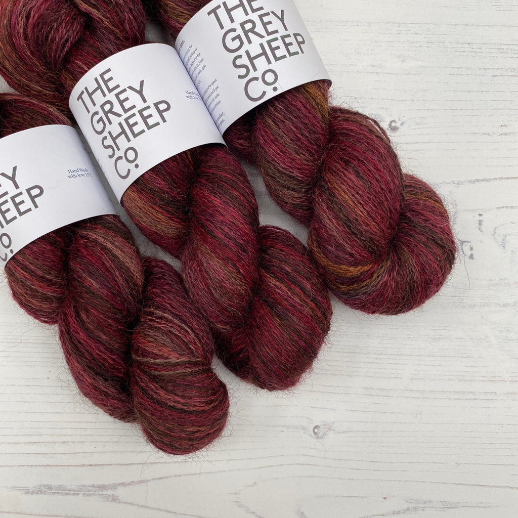 Our Gotland yarn is from our own pedigree flock of Gotland Sheep. Each year we lamb rear and shear our Gotlands to produce some of the finest British wool on the market today. Susie shear our flocks at Christmas or early in the New Year to get the very best quality fleece, they are then tucked up in the barn with oodles of clean straw and hay. The fleece goes to Yorkshire for washing then down to the West Country for spinning by John Arbon. Finally winding its way back to the farm for hand dyeing by Emma.